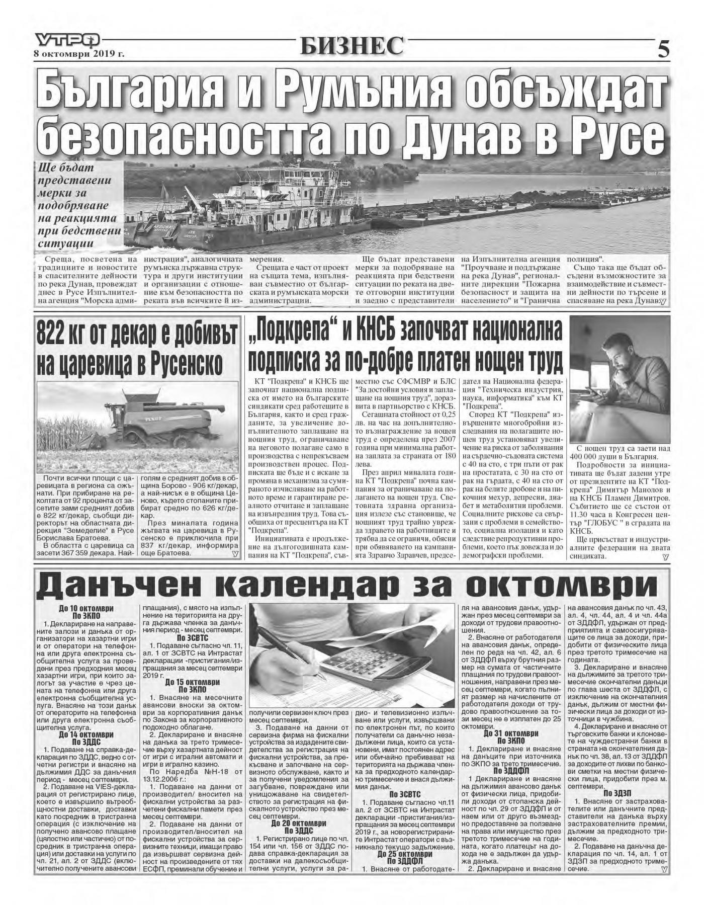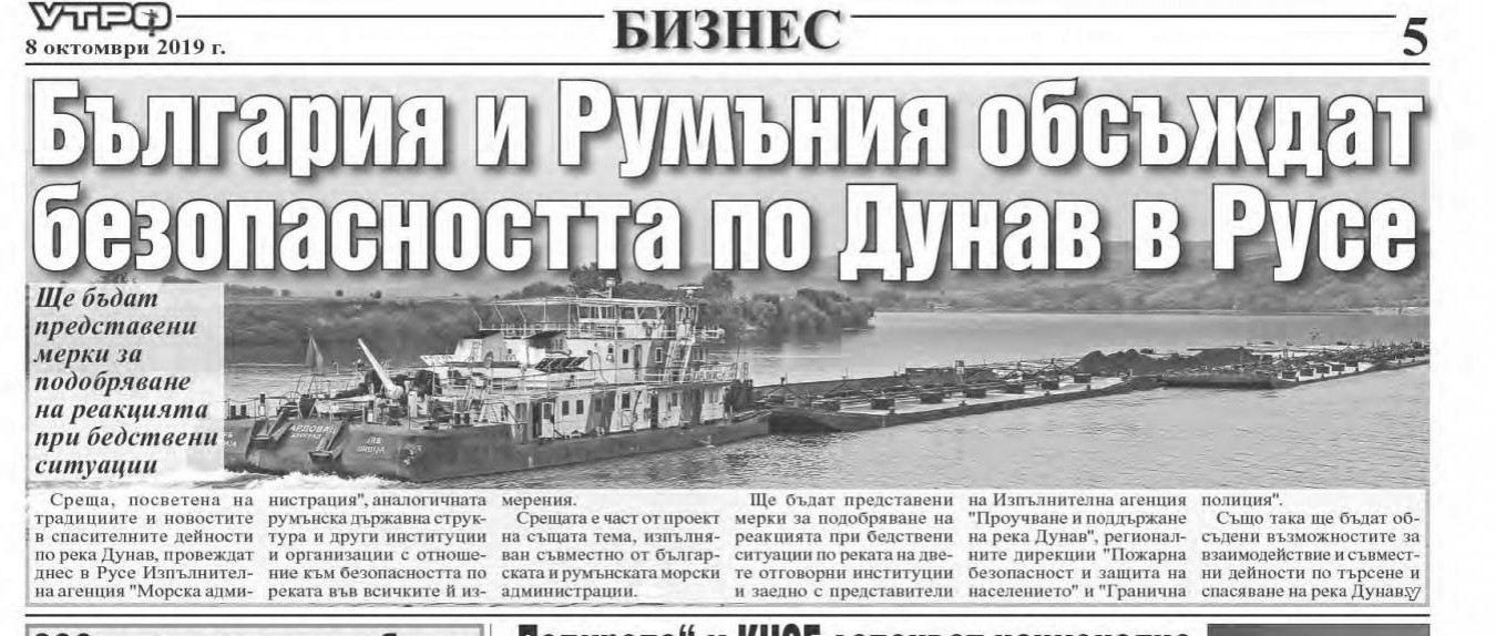 България и Румъния обсъждат безопасността по Дунав в Русе | 09.10.2019 00:00 | Утро | стр. 5