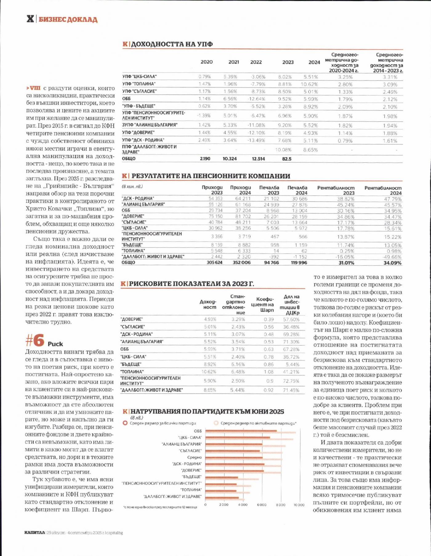 За 2024 г. всички без най-младата компания „ДатлБогг" са на печалба. Сумарно за сектора тя се покачва с над 25 млн. лв. до 120 млн. лв., като маржът остава внушителен - над 30% С планираното в очакваната пенсионна реформа понижаване на таксите рентабилността би трябвало да се свие чувствително, което ще направи и за другите по-малки играчи трудно да си покриват разходите.